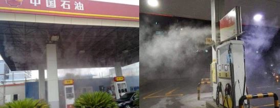 מערכת הקירור של אטומיציה של תחנת הדלק משתמשת בעקרון המים כדי להתאים את האקלים הטבעי ומאמץ את שיטת האידוי והקירור. הערפל מתפזר באוויר, וערפל המים סופג כמות גדולה של חום במהלך תהליך האידוי כדי להשיג אפקט קירור מהיר. במקביל, הוא מחליף חום ולחות באוויר הזורם, חלקיקי ערפל המים סופגים את החום (או החום ההגיוני) של האוויר, מתאדים ומתאדה כדי להגביר את לחות האוויר ולממש את לחות האוויר. במקביל, הוא יכול להסיר מזהמים אוויר, להאיץ את זרימת האוויר, לנטרל יונים חיוביים עודפים באוויר, להגדיל את תכולת היונים השליליים באוויר, להפוך את האוויר לרענן ונעים, וליצור ולשפר את סביבת העבודה והמגורים של אנשים.
